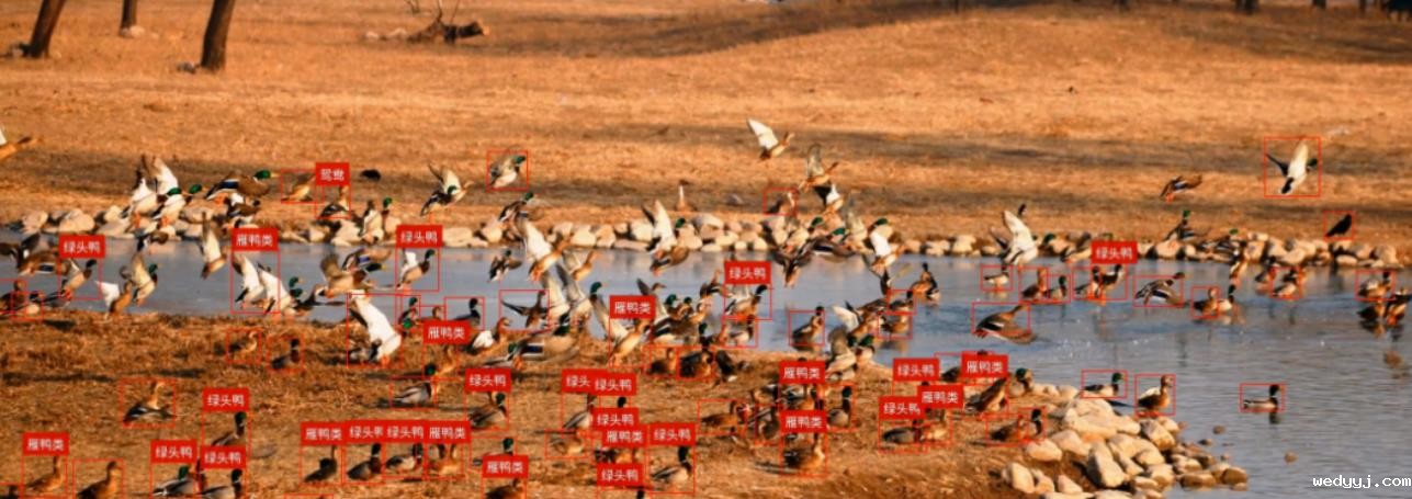 基于图像与视频智能技术的物种监测。物种视频监测识别系统由硬件设备和软件系统两部分构成,硬件设备包括前端摄像头采集设备、后端识别服务器和终端展示设备(如手机、电脑和展示大屏等),这些设备协同工作,用于采集、处理和展示视频和图像数据;软件系统中部署了神经网络算法模型,用于图像和视频的分析,通过对物种的特征提取和分类,能够获得高精度的物种目标识别结果,同时还可以输出不同物种的数量。