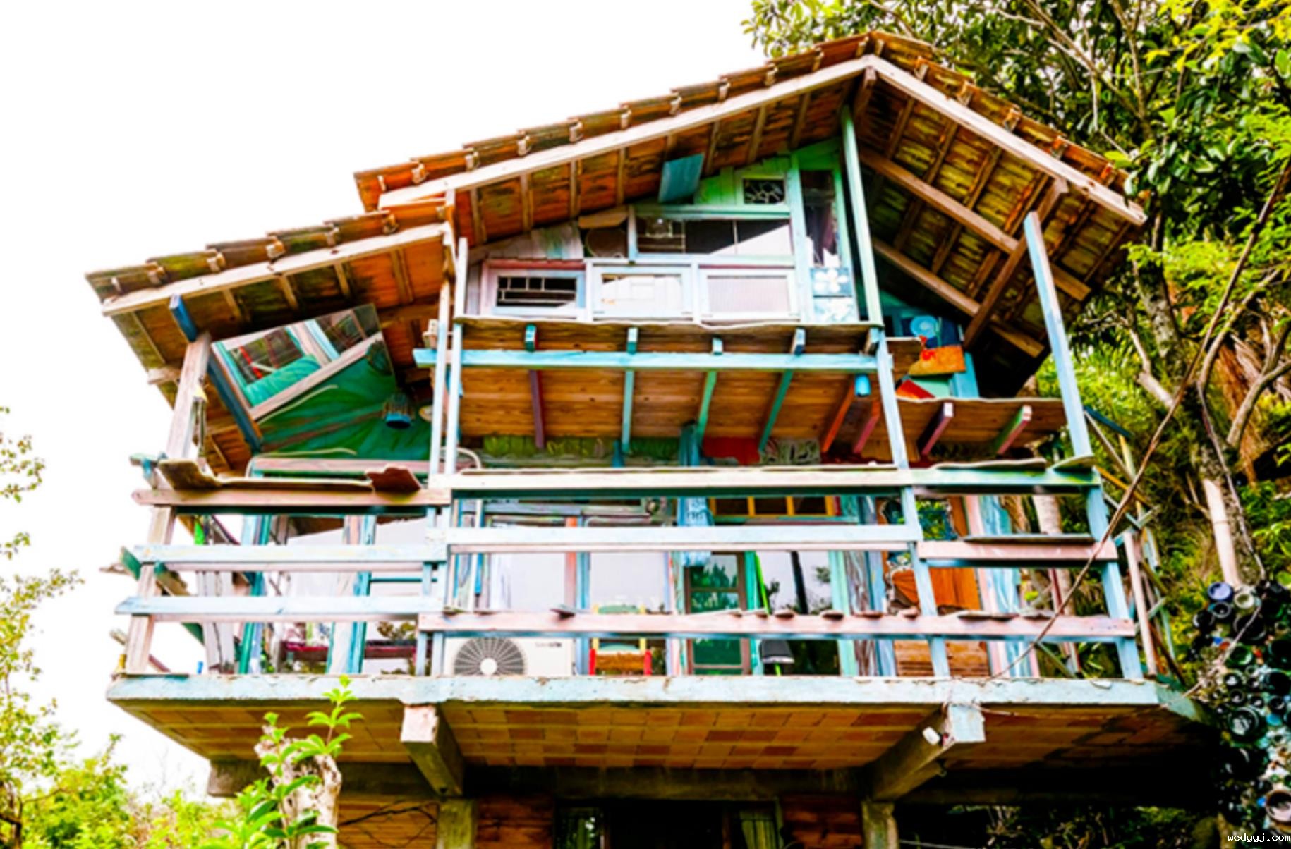 在巴弗洛里亚诺波利斯的一座小山顶上有一个五颜六色的房子,它被称为“Cabana Floripa”,是由一位乌拉圭艺术家建造的。最初这位艺术家只是想建造一个属于自己的工作室,于是他直接放飞自我,完全凭直觉将自己到处寻找到的其他拆除建筑物遗留的旧木材、玻璃瓶、瓷砖、破镜子和其他顺手发现的“垃圾”组合在一起,赋予它们新的生命。这座色彩缤纷却又拥抱自然的房子建成后大受好评,如今Cabana Floripa回收小屋已经变成了AirBNB上的热门客房,它不但没有造成经济和环境负担,反而还帮主人赚到了外快。