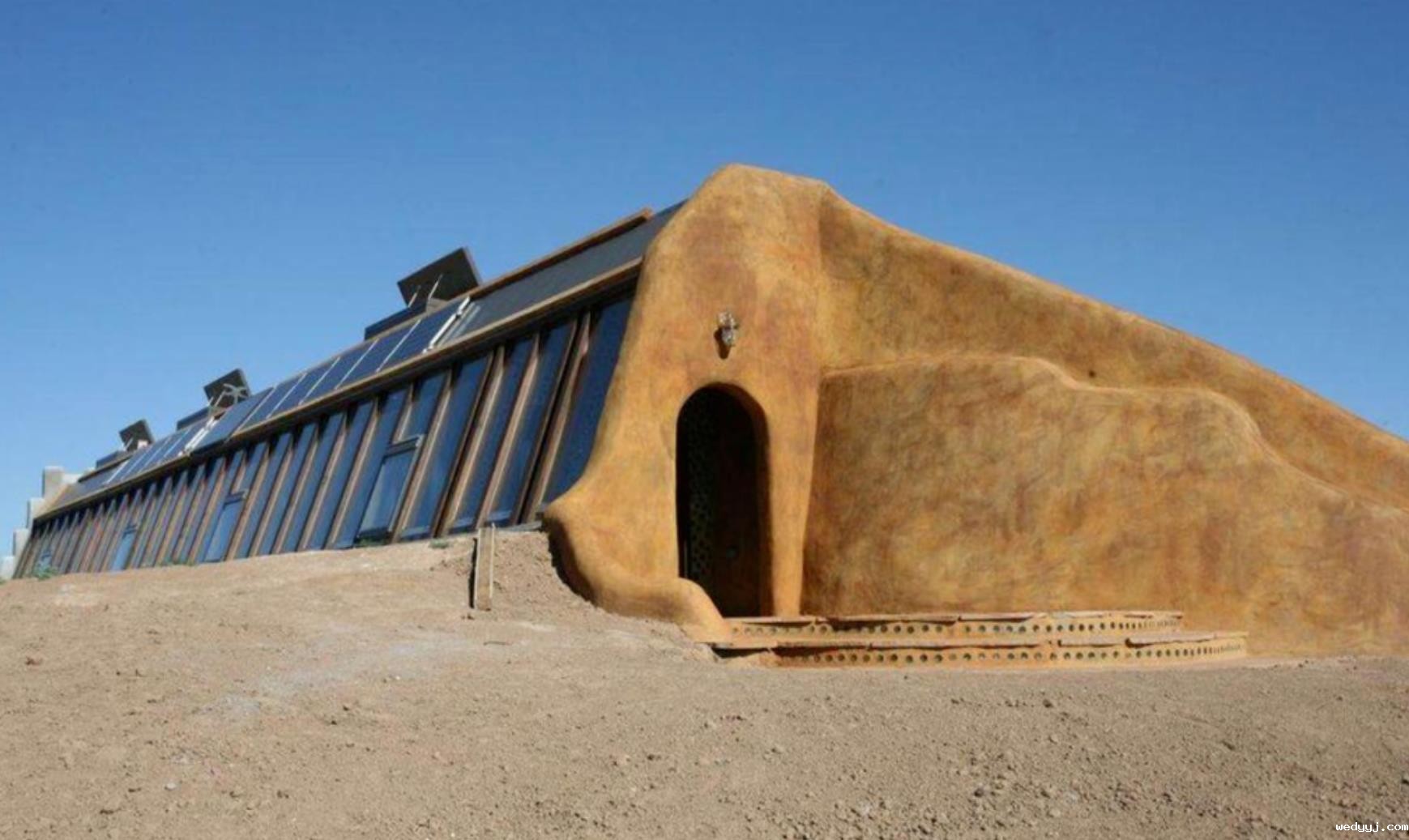 这座看起来很科幻的建筑叫“地球飞船”,是由天然和回收材料制成,并附有集水、污水处理、食品生产、太阳能和风能等系统。顾名思义,其设计理念来自能自给自足和保持低废弃的宇宙飞船。整个建筑的结构是由充满泥土的废弃轮胎、旧洗衣机和冰箱的面板、回收的彩色玻璃瓶、废弃木材等构成的,因为这些材料大多很难降解,所以用它们建成的墙壁能够持续近百年以上,且施工完成后几乎不需要维护,也不会产生大量的水费和电费,十分适合想要体验离网生活的人。