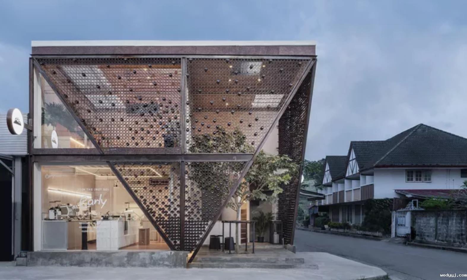 Early BKK是泰国曼谷的一家社区咖啡厅,店主希望改善社区在废物管理方面的问题,于是决定利用附近可回收的废弃物来做建筑材料。例如,咖啡厅大部分室内空间所用的板材原材料是废旧牛奶纸盒碎片,洗手台是废旧的镀锌铁油罐,门把手是废弃玻璃瓶等等,建筑立面中还装置了大约600个从社区中捡回来的废弃啤酒瓶。咖啡厅的运营也完全遵循可持续发展理念,包括不提供吸管和塑料杯、以太阳能为主要能源等。消费者最初可能只是为了喝点东西而走进这家咖啡厅,最终却会带着对可持续生活更深入的理解离开。