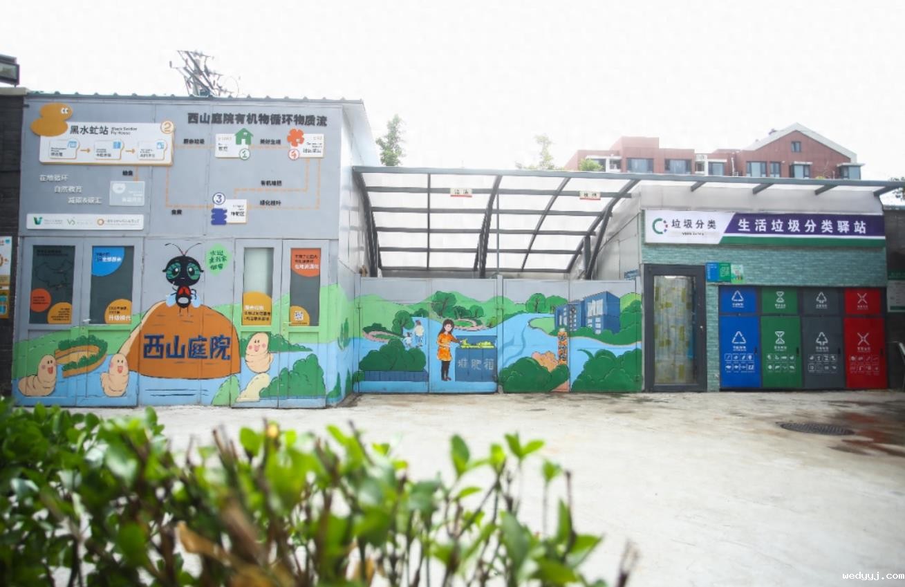 在分类投放和分类收集环节,目前西山庭院小区内均匀布置有9个分散式垃圾站,每个分散式垃圾站会根据实际投放需求调整垃圾桶放置数量。对于不会分类投放的业主,会定期、定时安排相关工作人员或者合作组织志愿者进行现场监督和指导。在日常巡检中,这些分散式垃圾站垃圾桶内的垃圾不能超过容积的70%,清运工人每天会按时用电动车将分类收集的垃圾运到小区东北角的垃圾处理站,进行检查或部分二次分拣。如果业主有可回收物欲出售,也可以拨打物业指挥中心电话,预约专人去业主家里收购。