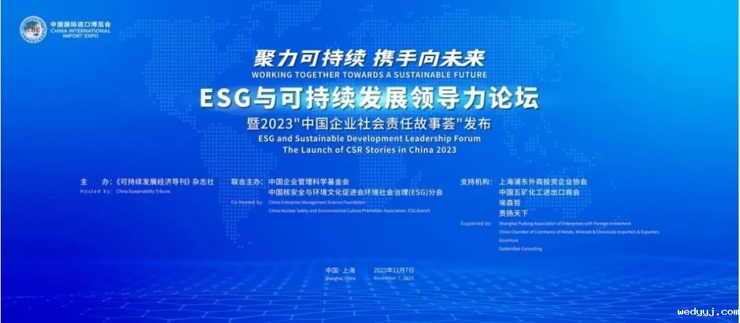 2023年11月7日,“聚力可持续,携手向未来——ESG与可持续发展领导力论坛暨2023‘中国企业社会责任故事荟’发布”在第六届中国国际进口博览会上成功举办。相关部门领导、知名学者和具有代表性的企业在论坛上共话ESG 与可持续发展领域的最新发展趋势,深入分享优秀ESG创新实践,为助力可持续发展领导力的提升以及2030 可持续发展目标的实现注入新的动力。