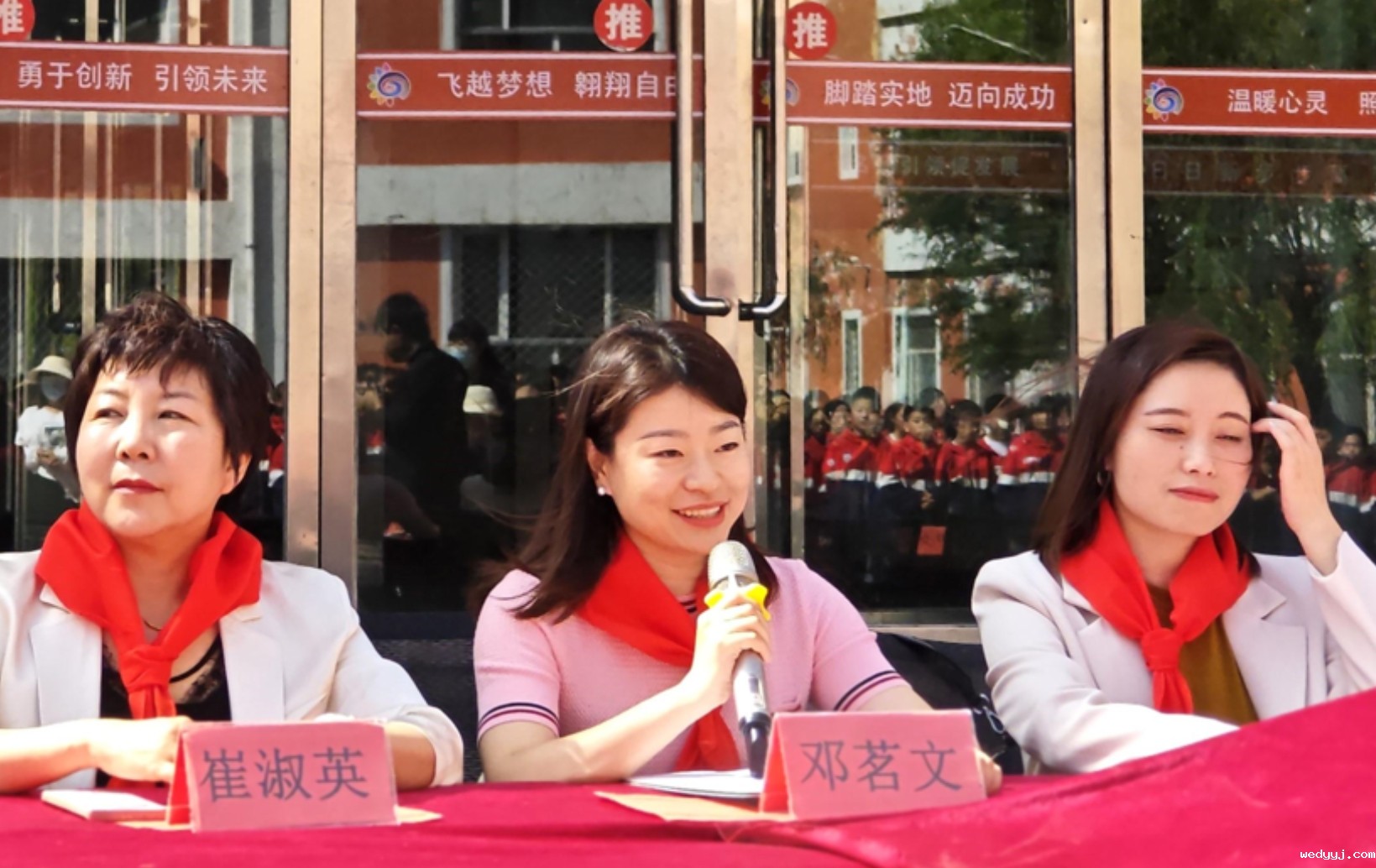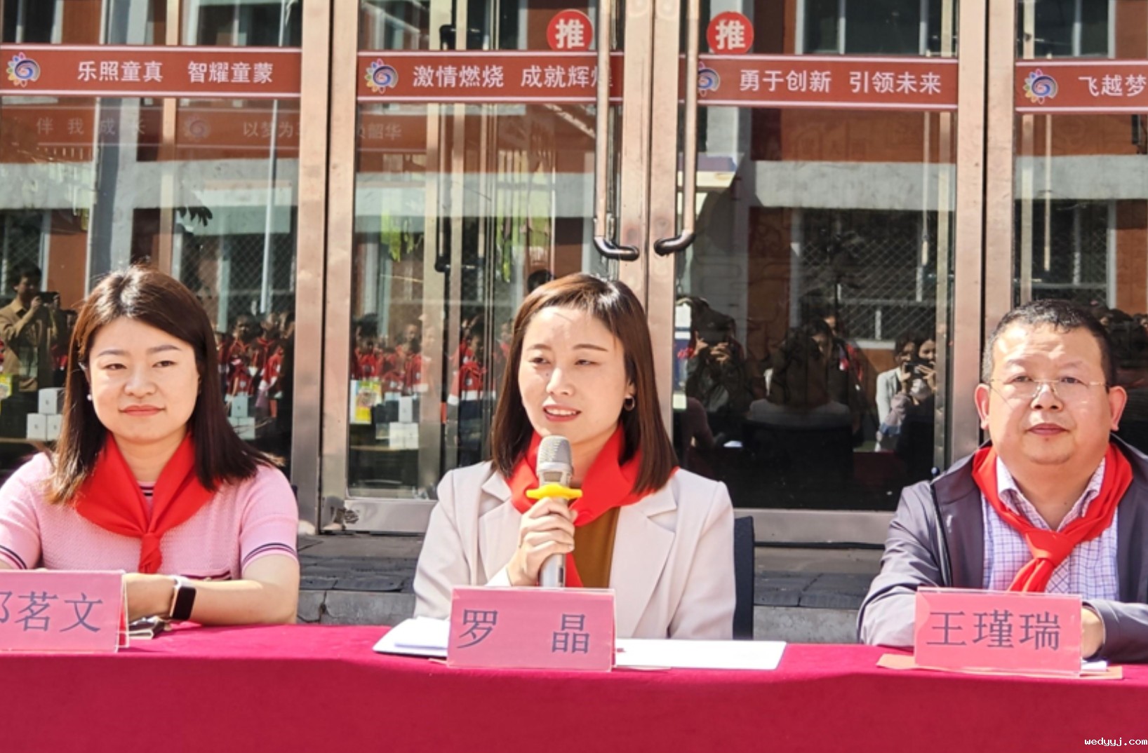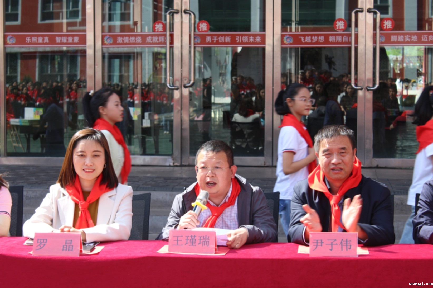 西关小学的孩子们为现场嘉宾佩戴红领巾