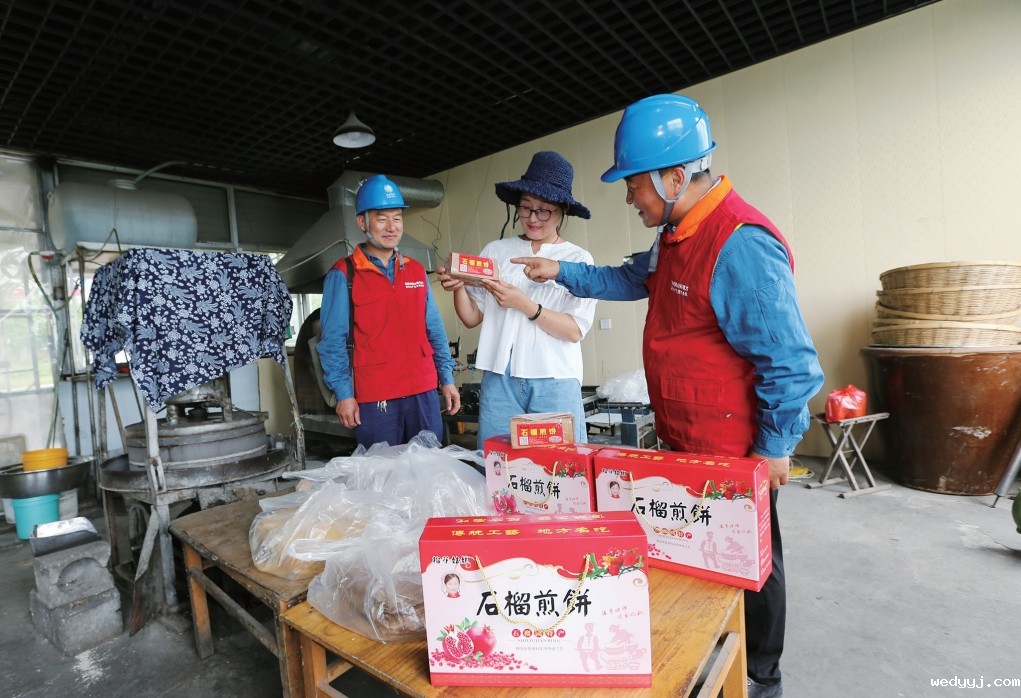 Yan Hui, a villager born and raised in Dongbailou Village, registered the “Pomegranate Flower Girl” trademark and intended to make money by processing pomegranate pancakes. However, keeping pomegranates fresh is no easy feat. The traditional method of storing them in cellars can only keep them until the Spring Festival, and there are a lot of rots. Later, State Grid Zaozhuang built the 10kV Bailou branch line of the Wangzhuang line here, and the problem was readily solved. By increasing the electricity capacity, Yan took the lead in introducing the “home pomegranate fresh-keeping storage”, and setting up a pomegranate pancake processing factory equipped with high-powered processing and production machines. With complete refrigeration and production facilities, her pomegranate pancakes sell well near and far, with the highest price reaching RMB 16 per kilogram, setting a new record for the top price of pancakes in Shandong.