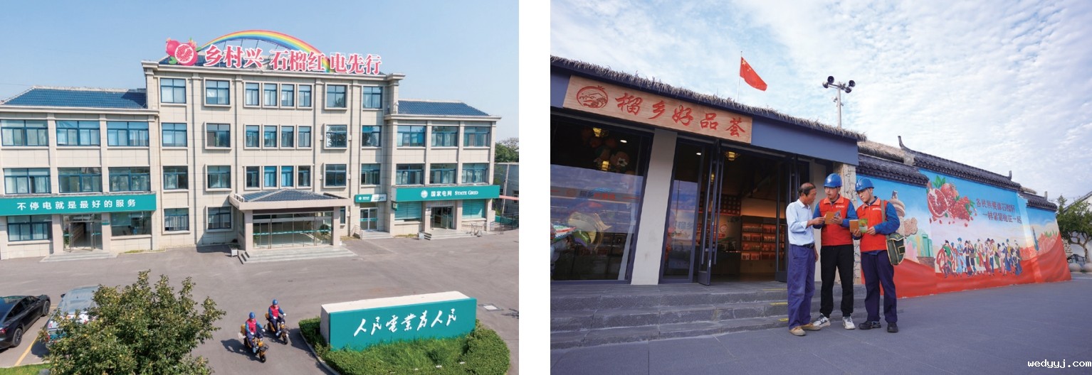 Over the years, State Grid Zaozhuang continuously optimizes the development plan of the Guanshi Pomegranate Orchard, as well as the ongoing large-scale transformation and upgrading of its power grid. In the past fve years, 51.63 kilometers of 10 kV power supply lines and 98.56 kilometers of low-voltage power lines have been renovated, and 66 distribution stations have been upgraded. Currently, there are 103 transformers, 220.7-kilometer low-voltage power lines and 4 49-kilometer power lines within the Guanshi Pomegranate Orchard. The power lines extend horizontally and vertically, covering the nooks and crannies of the orchard.